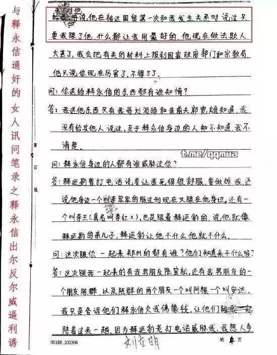 少林寺主持释永信大老婆被曝光?网传释永信通歼笔录供认多次嫖娼包养情妇
