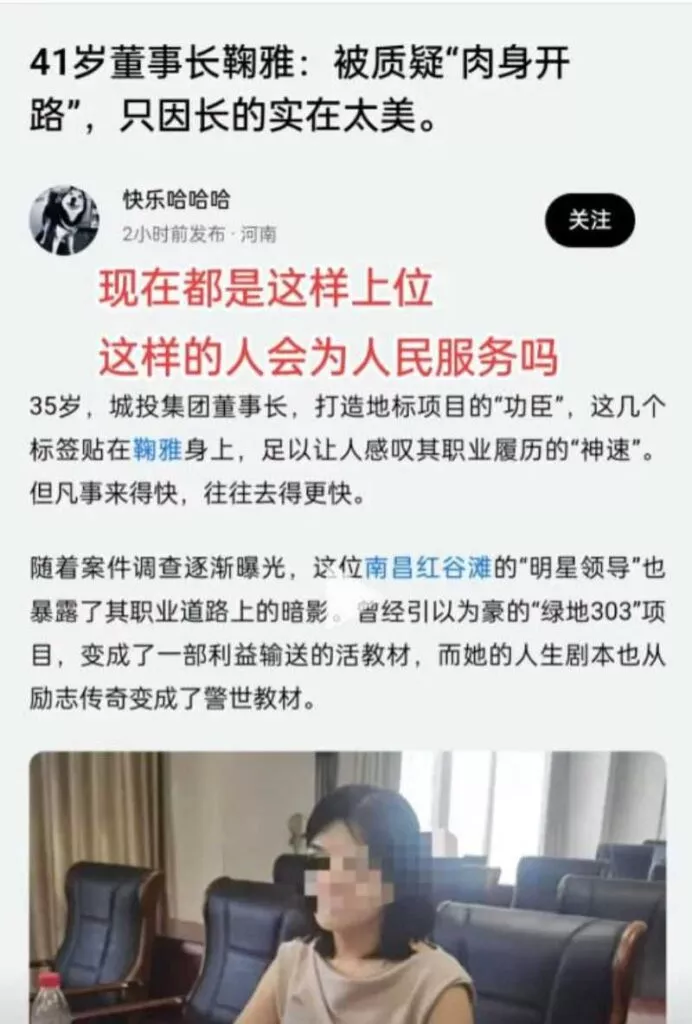 南昌市的鞠雅,作为红谷滩城市投资集团有限公司备受赞誉的优秀党委书记,在21岁时便已跻身高管行列,担任副局长。然而,最近媒体曝出了她背后的争议,指控她在职业生涯中利用个人关系和权色交易,促成了自己的快速晋升。