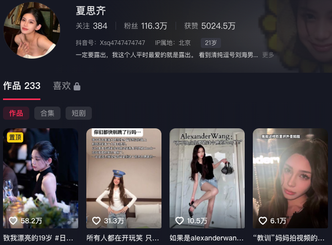 116万粉丝抖音顶级名媛夏思齐大起底拜金女的成名之路