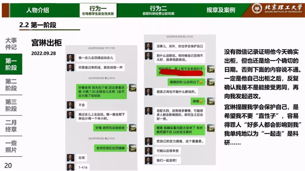 内地高等学府北京理工大学近日曝出震惊事件,男教授宫琳被指控与多名男性学生存在不正当关系。这位教授为了满足自身的私欲,长期对学生施加高压,通过各种手段B迫他们屈从于他的性要求。此事实在令人震惊,一个男教授竟然以这样的方式追求个人私利,更让人愤慨的是,他为达目的不惜采取不择手段的方式。
