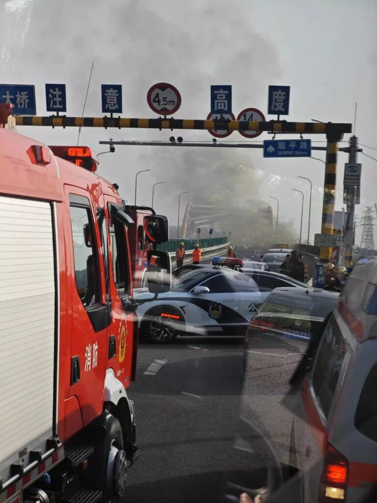 网传北京顺义区彩虹桥起火坍塌桥面整段崩毁交通瘫痪