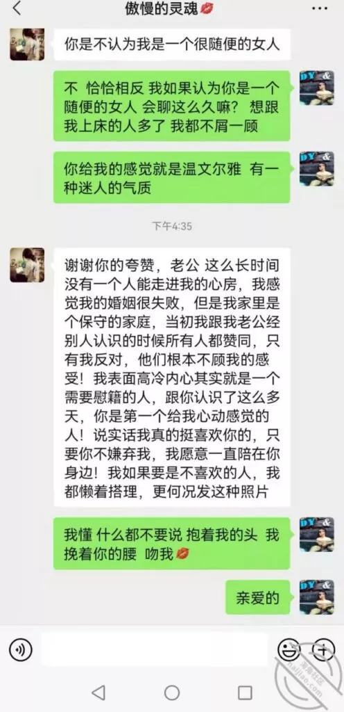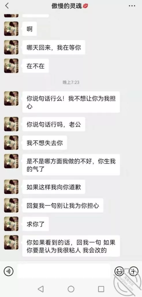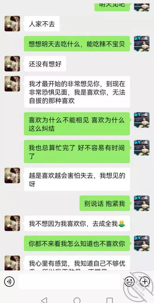 但是我确实爱她,爱如果需要回报,也就成为了交易,我不想把我对她的孽恋,强加在她的痛苦之上!那样我们都会非常痛苦,大神的道路我学不来,如果没有一条两全其美的路,我想放弃了!没有可以让我把小号的 高大帅气的形象能够转化过去的方法了!现实点,设身处地的为我想一下!兄弟们,站在我的角度,不要不切实际的让我开房Cao嫂子了!发了这么多天 就没有一个能让我满意的方法了吗,从现实角度出发的了吗!唉 下面附一张我嫂子跟我小号的聊天记录!我在发帖 的时候,她还在她的房间里疯狂的找我!已经两天没有回她一条信息了!