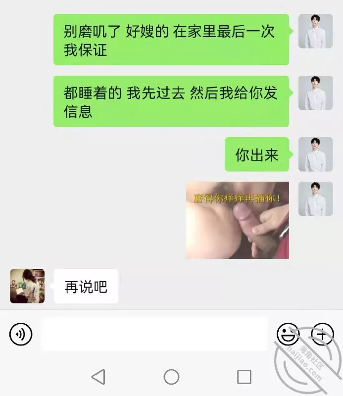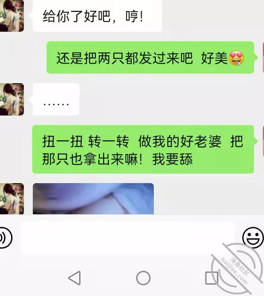 这么长时间嫂子第一次给我发了两张漏扔自拍照!搔嫂子,我要是把这些聊天记录发给我哥会怎么样!期间还给我发了视频,我没接,也没法接!接了视频一看是我全露馅了!语音这么长时间我都没敢发过!!!