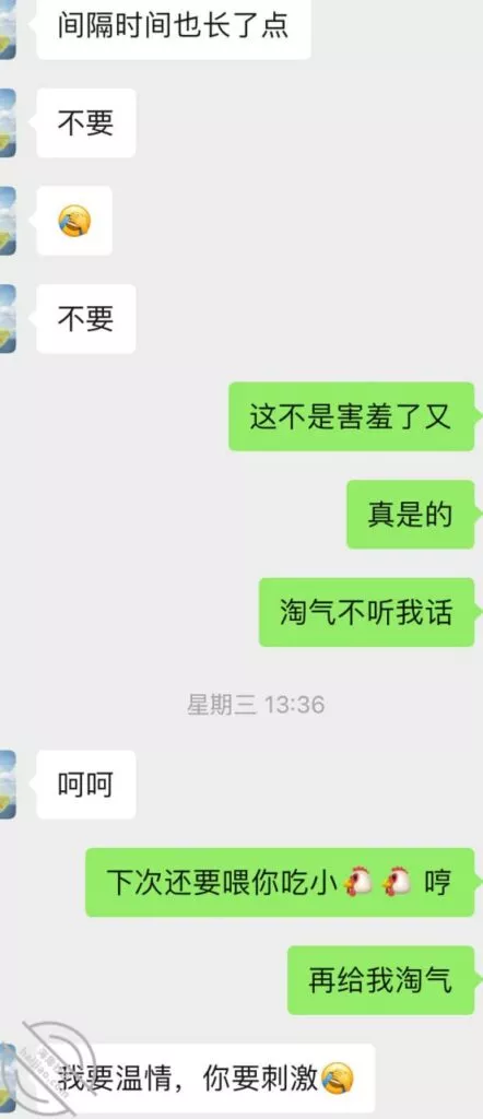 这次结束以后又重燃了她的激情,大概过了一周吧,就忍不住给我发消息,按她的说法估计是又被点燃少女的激情,开始变得主动想要了,我平时比较忙偶尔才有空去,所以每天有空就会微信撩一下她。