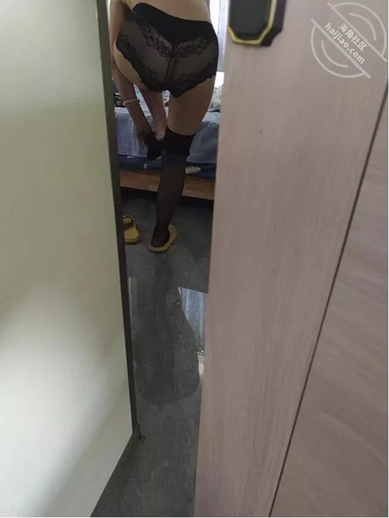 我又开了点门发现我姐门没关,就想着假装上厕所再去瞄一眼。能听见我姐是在换衣服,我就悄悄走过去,特意手机开着,手放在音量键哪里随时偷拍,还真让我拍到了。我姐穿的这搔,黑丝蕾丝内裤和黑丝。