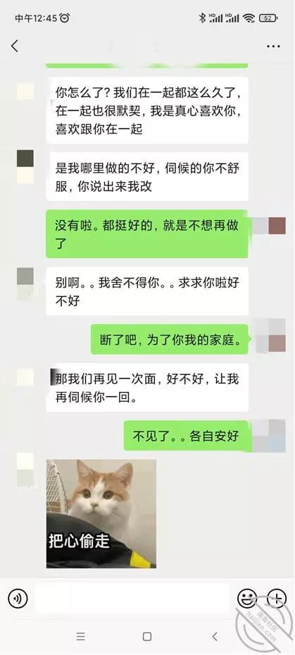 还依然缠着我姐说要再见一次,就是想和我姐打个分手炮呗,那肯定不能让啊!这东西只有一次和无数次,这次出去了,以后肯定一找还是要出去,我就直接帮我姐把他拉黑了。你们说我做的对吗